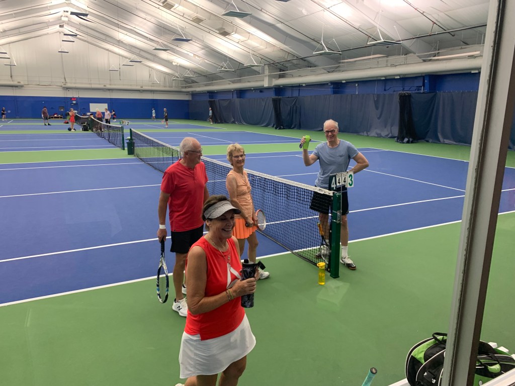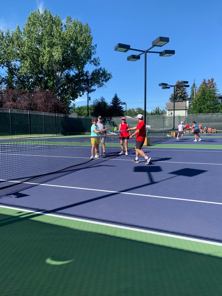 Welcome to the Website of this exciting new initiative in Calgary. This is a fun and competitive daytime league for seniors who are aged 60+ by the end of the calendar year. We play doubles tennis (men’s, ladies, and mixed doubles) on Wednesdays throughout the City of Calgary (both outdoor and indoor courts) followed by optional get togethers over food and drink. We play during June, July and August. We have 10 teams committed to play in 2026 and we have large rosters to account for vacation time, injury or illnesses.